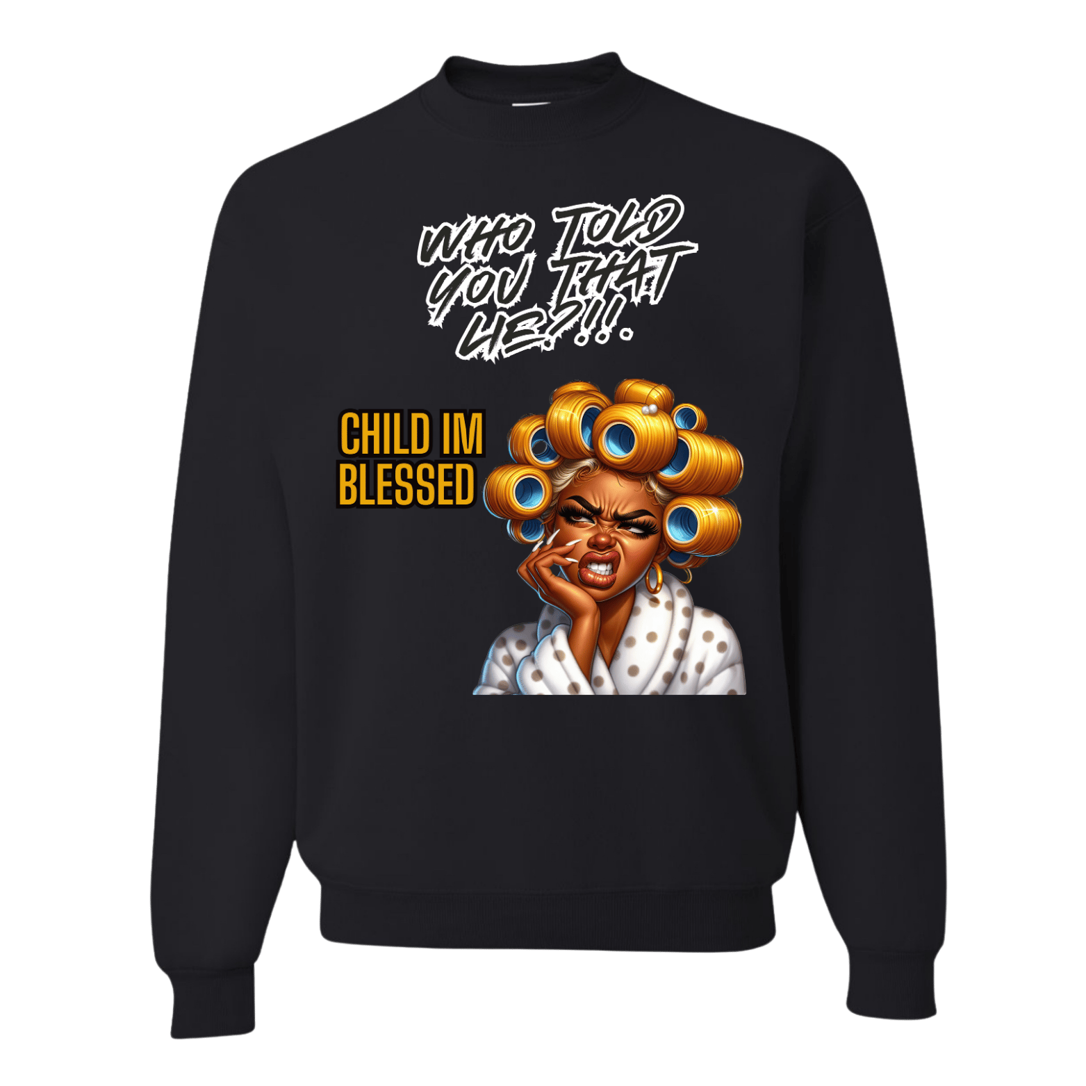 Who Told You That Lie?! Child, I’m Blessed is more than a sweatshirt—it’s a whole attitude. Bold faith, unbothered confidence, and undeniable favor wrapped in comfort. For the woman who knows what God said and wears it loud. 💥✨